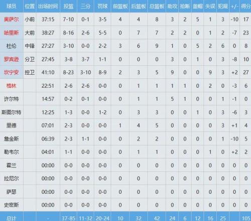 21屆狀元郎坎寧安投籃23中8貢獻27分5板9助同時出現9次失誤;內線核心杜倫投籃10中3,僅拿下8分9板準兩雙,唯一亮眼的就5帽數據。
