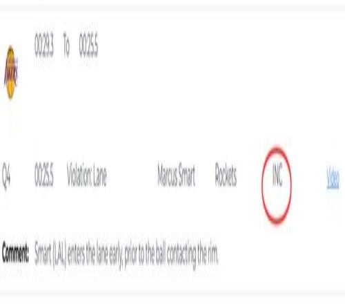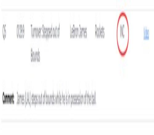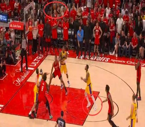 第二次漏判發生在距離加時賽結束還有1分29秒。裁判報告指出,詹姆斯在與火箭球員拼搶時拿到球,但這時他的腳已經出界,裁判沒有響哨。雖然這一球理論上是湖人獲利,但詹姆斯救球回來,火箭又得到球權。這一漏判的影響,對比賽來說沒有上一次那么明顯。