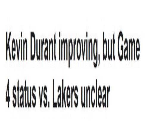 杜蘭特早在系列賽首戰(zhàn)就因右膝挫傷缺陣,G2迎來(lái)復(fù)出,出戰(zhàn)41分鐘砍下23分,球隊(duì)94-101不敵湖人,而他在該場(chǎng)比賽末段意外扭傷腳踝。
