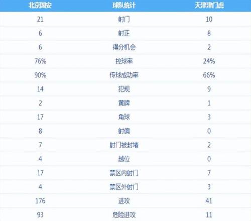 天津津門虎打出漂亮的防守反擊,北京國安空有控球率的偽傳控被證明是失敗無效的。事實上,國安球員踢得很努力,幾乎所有的數據都比津門虎表現更好,連鏟球和犯規數都比對手多。蒙哥馬利站在球場邊干著急。