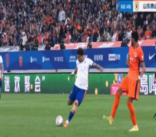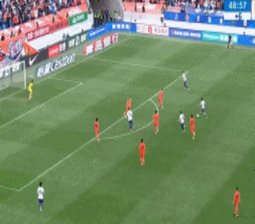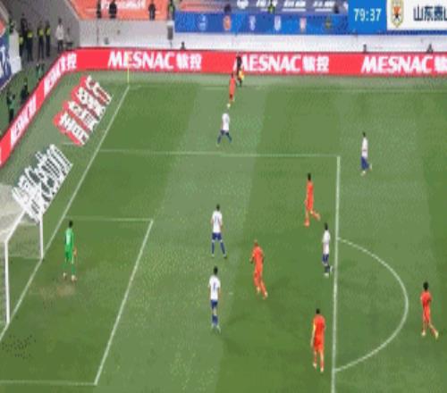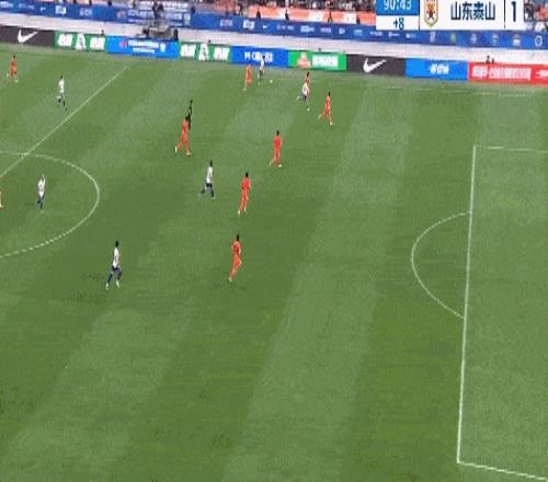 補(bǔ)時(shí)階段,克雷桑左路斜長(zhǎng)傳,皮球彈地后入網(wǎng)為泰山扳回一城,1-3海牛。