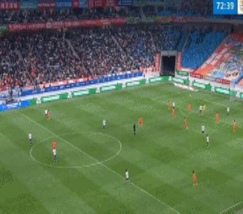 第43分鐘,劉洋傳中擊中橫梁,澤卡跟進(jìn)射門被牟鵬飛門線撲出。