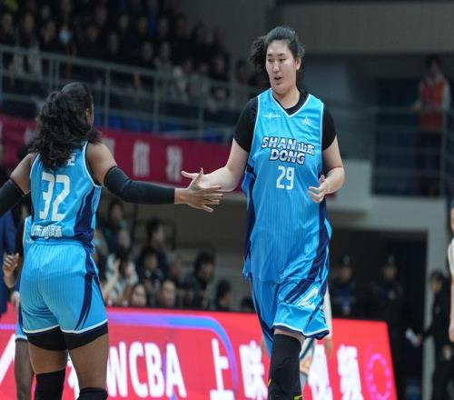 1月4日,山東隊球員張子宇(右)在比賽中和隊友擊掌。新華社記者 朱崢 攝