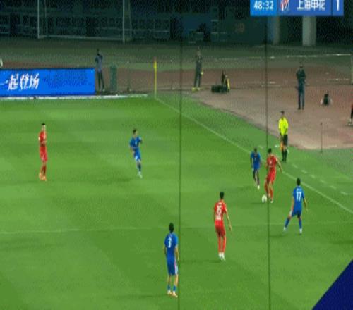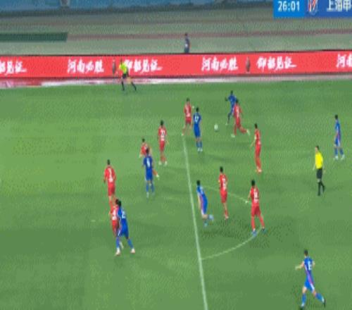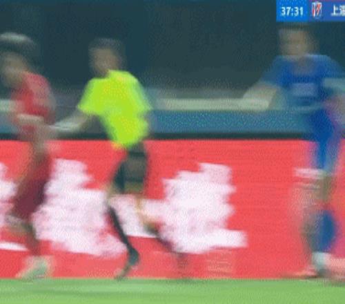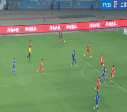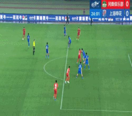 第37分鐘,特謝拉禁區扣球過人,被阿布拉汗放倒。主裁王競沒有表示,隨后經過VAR回放改判點球,吳曦頂住激光筆干擾,主罰點球破門,申花客場1-0領先河南隊。