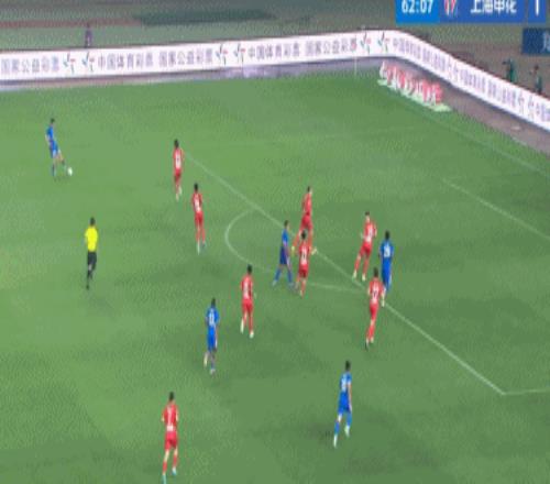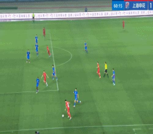 第63分鐘,馬納法邊路1v2打門被撲,陳晉一頭球補射破門,申花2-0領先河南。