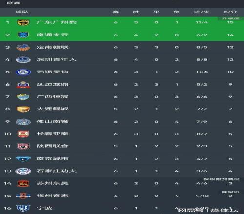 中甲積分榜:廣州豹領跑,南通支云升至沖超區,定南贛聯升第三