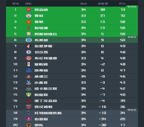 英超:曼城阿森納榜首交替,極致拉鋸戰,或到最后一輪才揭分曉
