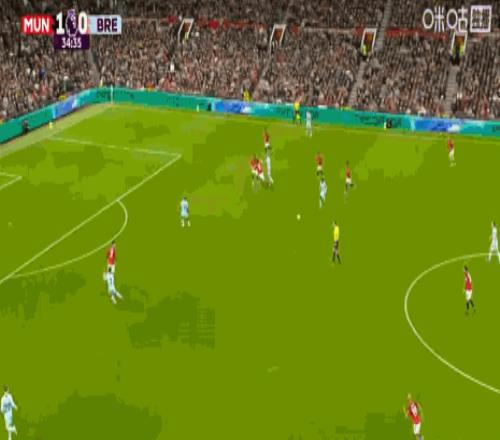 第43分鐘,B費助攻,謝什科破門,曼聯2-0
