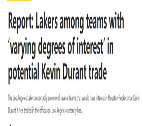 湖人有意引進(jìn)杜蘭特嗎?