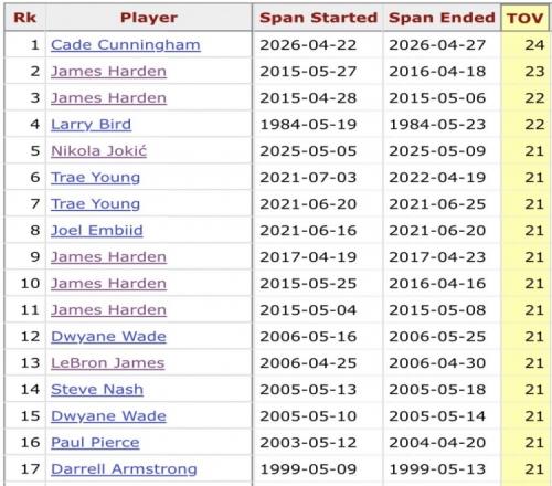 連續3場季后賽總失誤榜:坎寧安24次尷尬登頂火箭登多次上榜 Twitter 2026-04-29 18:40:55 籃球免費觀看_NBA免費觀看_騎士免費觀看_籃球高清在線_NBA高清在線_騎士高清在線 籃球 NBA 騎士 活塞 哈登 凱爾特人 老鷹 奇才 特雷·楊 76人 恩比德 熱火 韋德 太陽 掘金 約基奇 火箭 詹姆斯 上一篇: 里夫斯談傷缺:只能坐在場邊觀戰無法影響比賽這種感覺非常糟糕 下一篇: 大比分31領先!塔圖姆系列賽終結戰15勝9負場均25分8.5板5.5助
