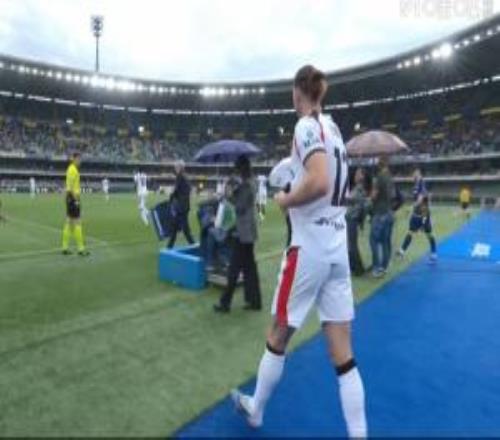 下半場雨戰米蘭客場挑戰維羅納半場休息階段,下起了大雨